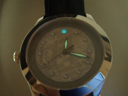 Dial: Gibeon Meteorite with Carbon Fiber background and sandwiched lume