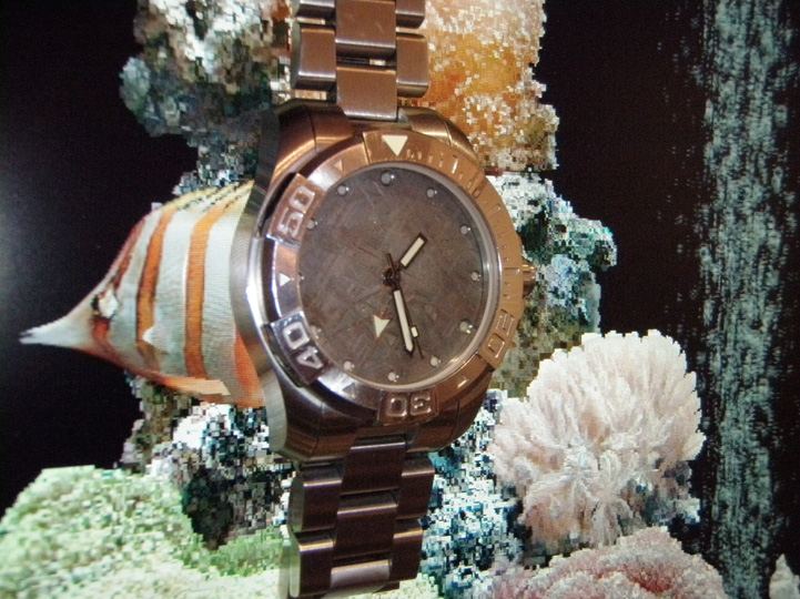 ™ Model Series: Custom upgrade of a Swiss dive watch to a meteorite automatic GMT. I converted this from a quartz watch because I liked the case and I wanted a bulletproof diver with one of my dials. It is not for sale but shown as an example of customization that is possible.
