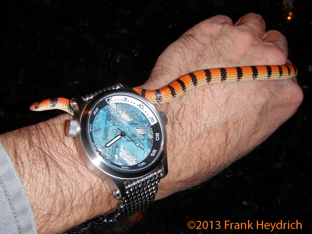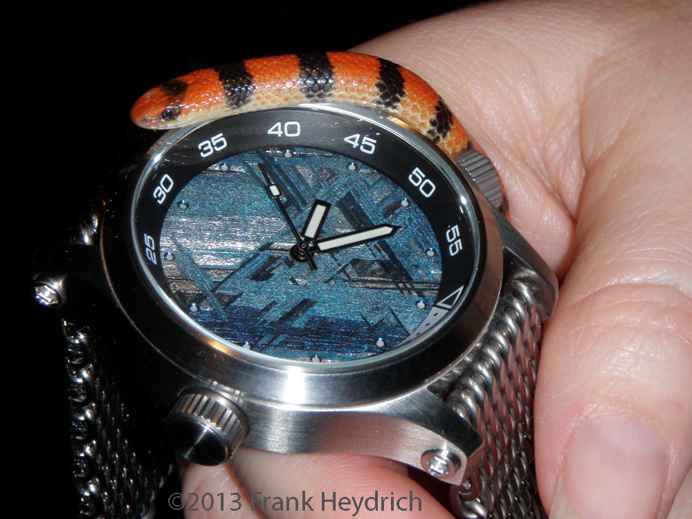 ™ Prototype upgrade of a Swiss dive watch to a meteorite automatic. This is another conversion of an existing watch with a quartz watch because I liked the case. The original watches are Swiss but the quartz movements sucked so bad nobody would buy them so I can buy the entire watch and afford to throw away the guts and band and machine the internals to accept a mechanical movement. I can do another if you like this and actually want to get it wet.