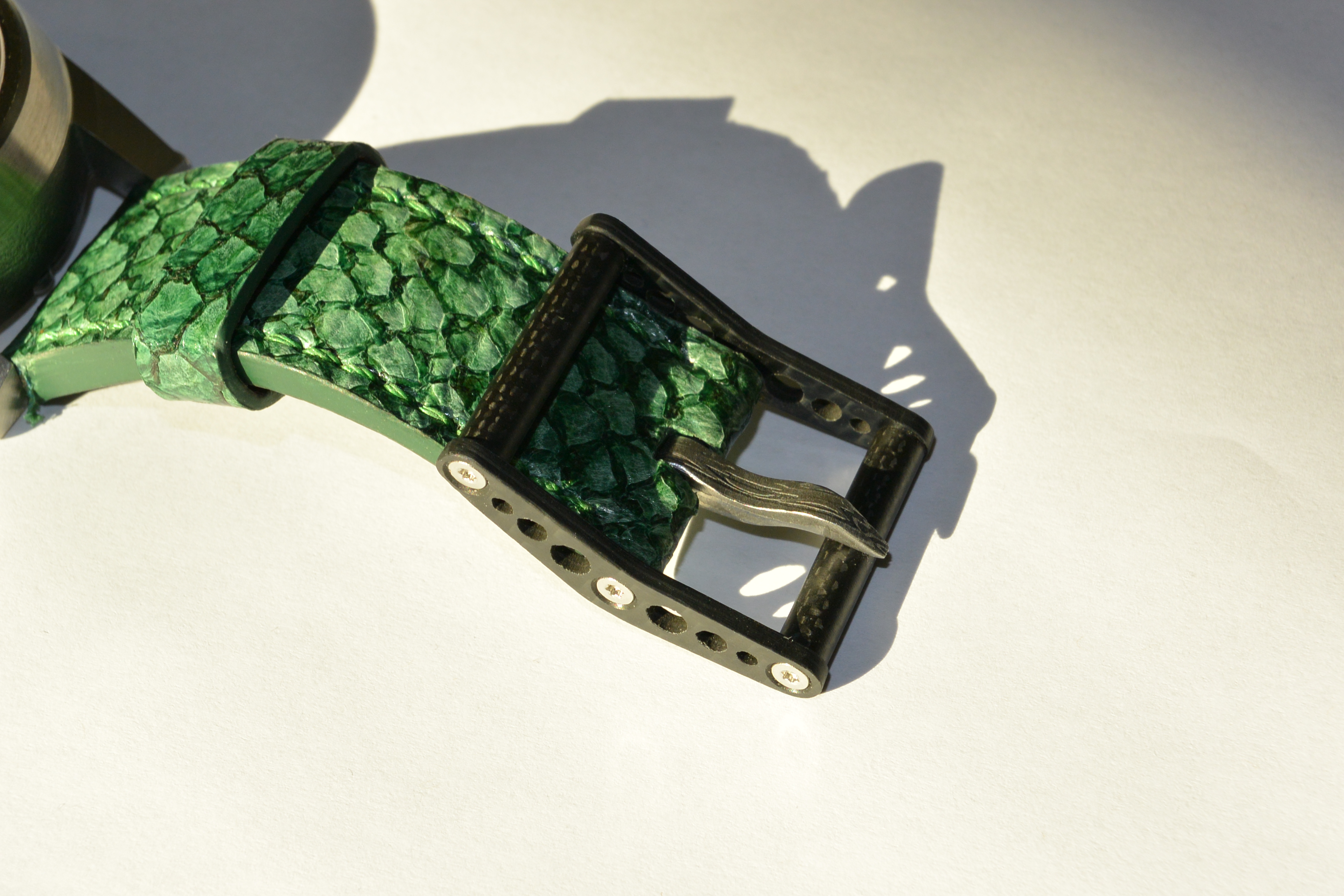 Strap: Custom 26mm wide custom South Australian Snapper fish skin leather (Pagrus Auratus) stiched in Phoenix by Jeanna of Stone Creek Straps