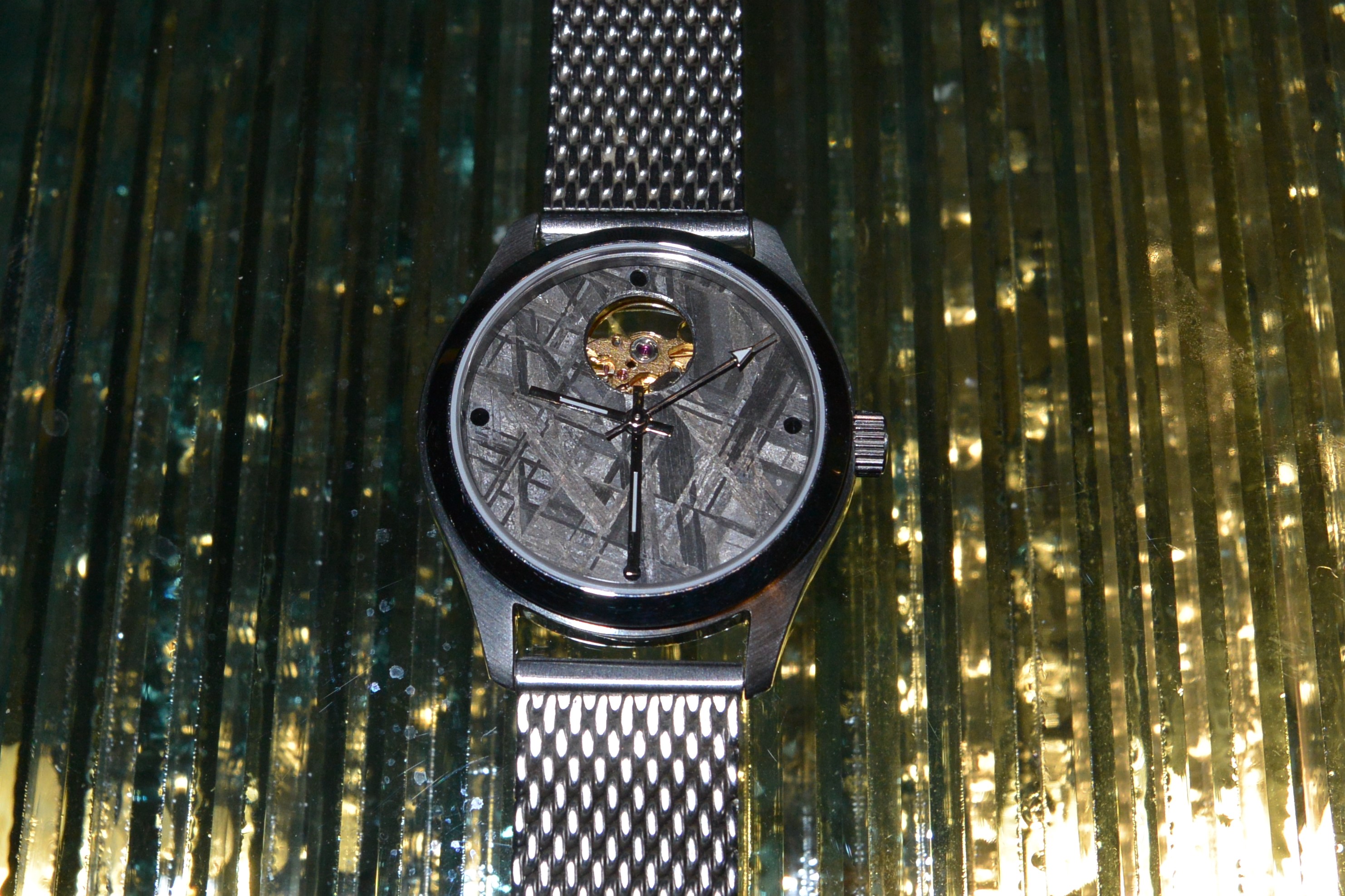 Finally I made Beth a meteorite watch. She needed one that could she could wear in the water so this has a screwdown crown.