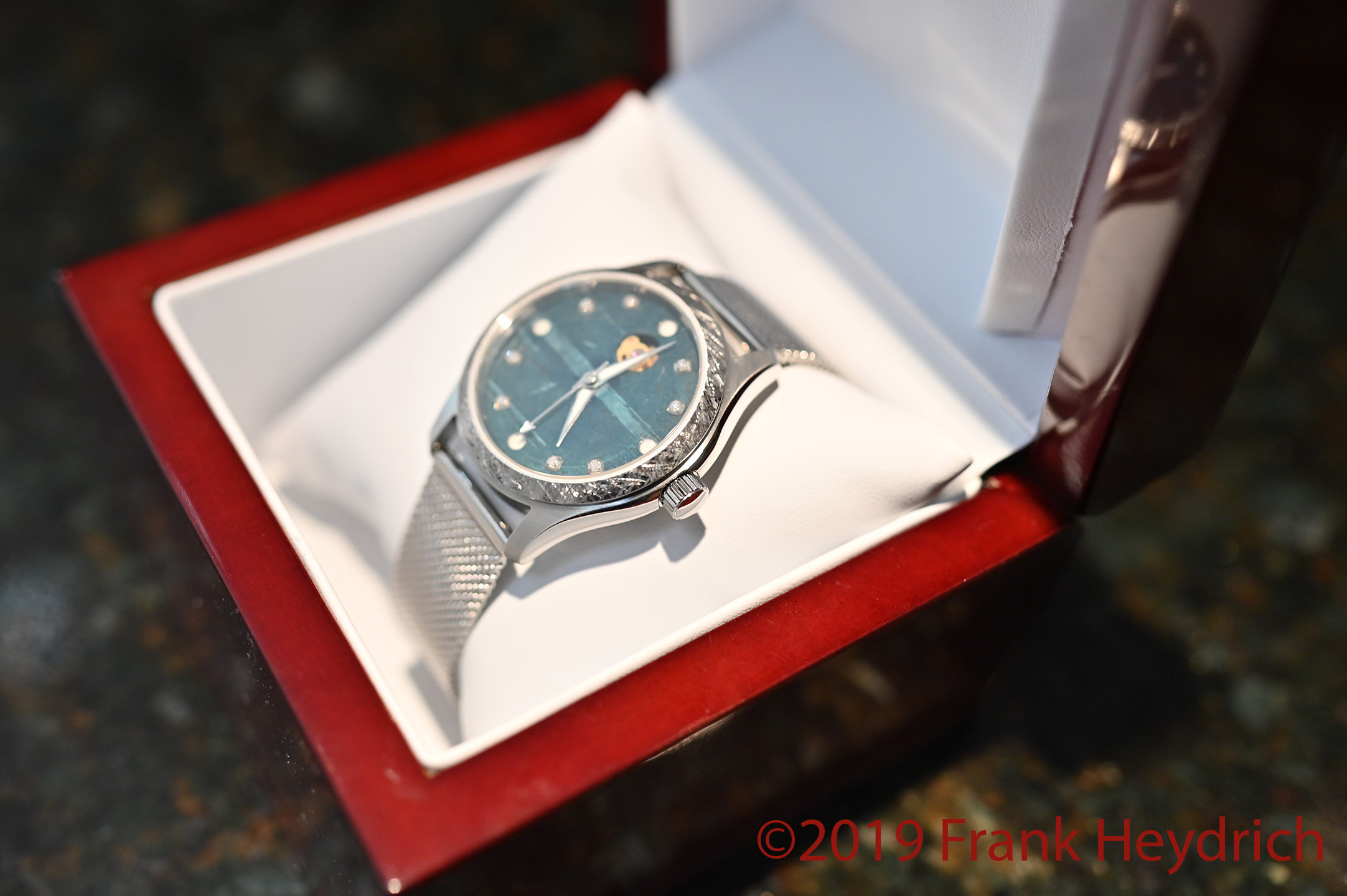 Dial: Gibeon iron meteorite blued with an open heart cutout and white diamond markers