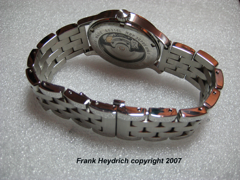 Movement: ETA2824 mechanical 25 Jewel Swiss automatic movement with sweepseconds hand (28,800 beats per hour), date, hacking (seconds stop during time setting),