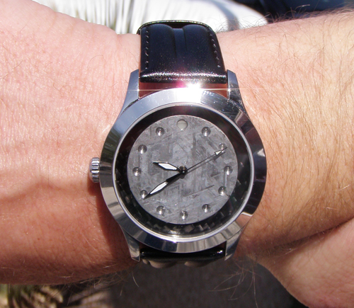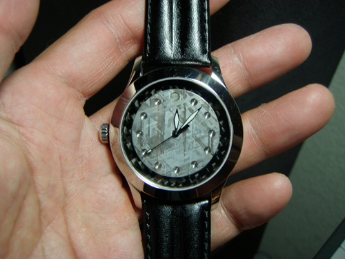 Dial: Gibeon Meteorite with Carbon Fiber background and sandwiched lume