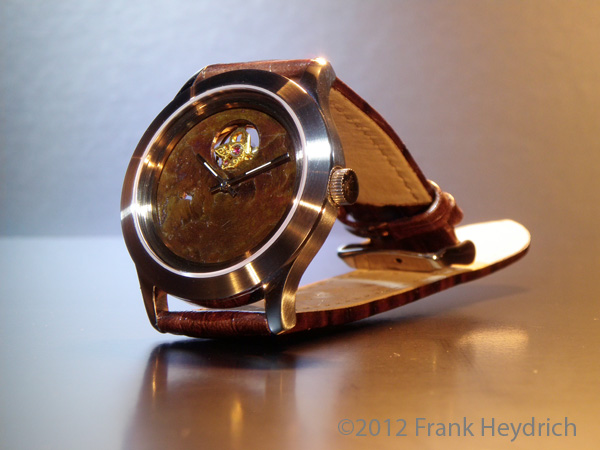 Dial: World's First BROWN METEORITE™, surrounded by brown steel chapter ring made from the Campo Del Cielo Meteorite (Argentina see wikipedia)