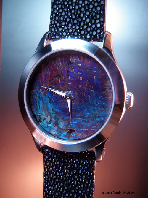 Dial: Made from Arizona's own Meteor Crater (see wikipedia Canyon Diablo Meteorite)