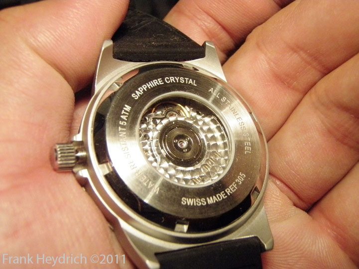 Case:44mm Swiss case, 5 atm, 316 stainless steel, display back, bead blasted
