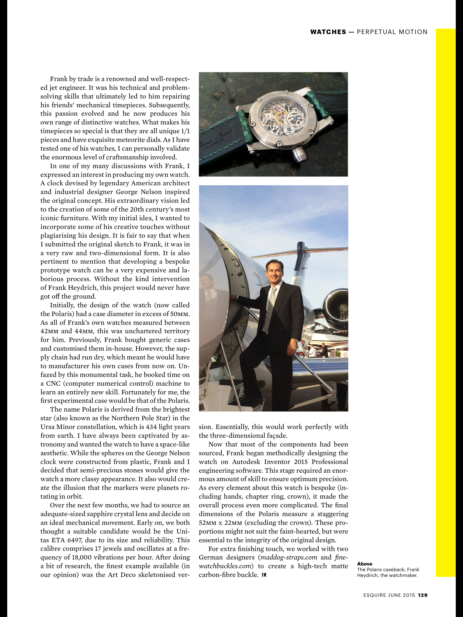 The watch was first featured in Esquire magazine before it was fully completed so it still has the preliminary hands.