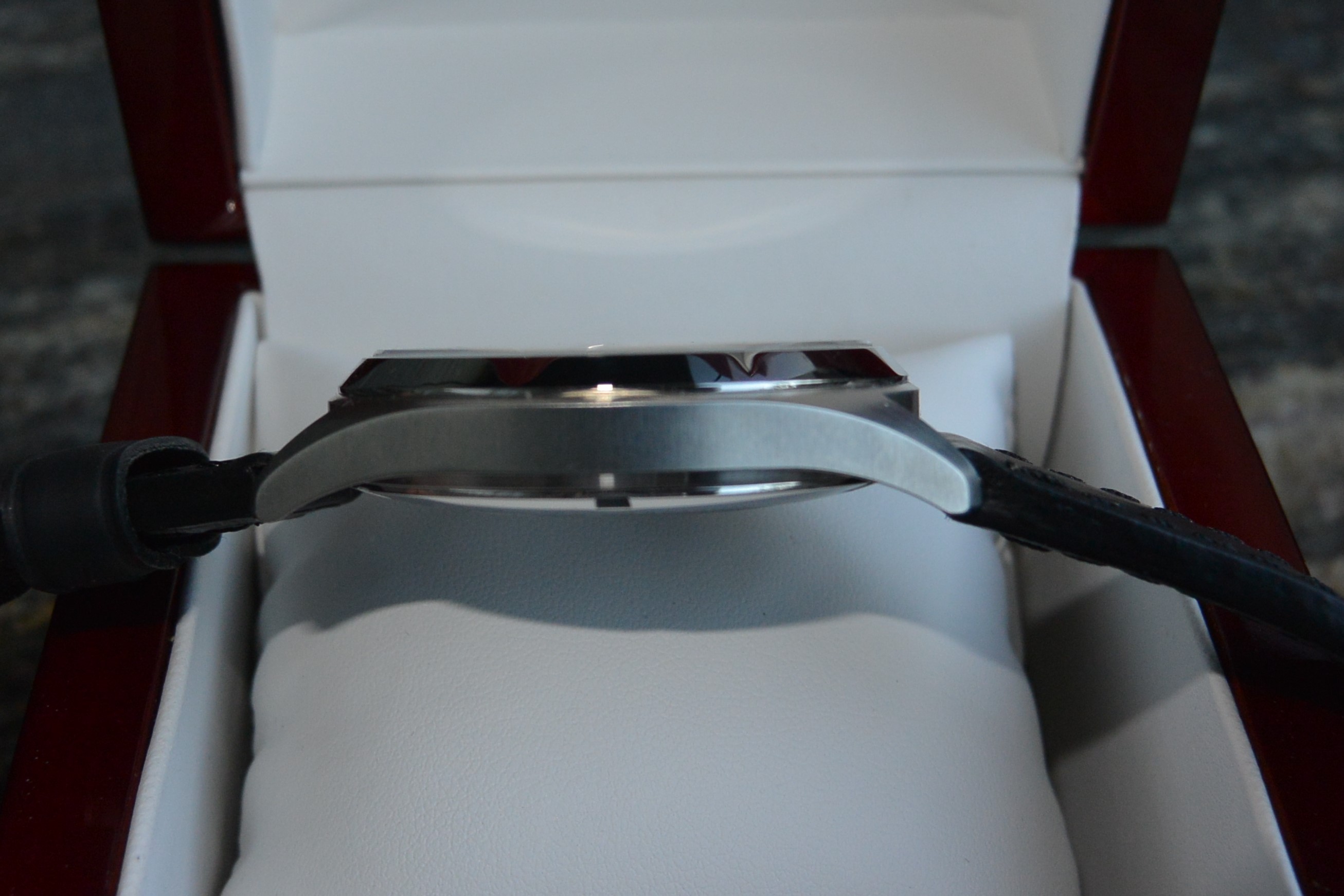 This is the second watch with this new sized dress watch case. This one has the regular crown but is available in screw down in water resistance is desired.