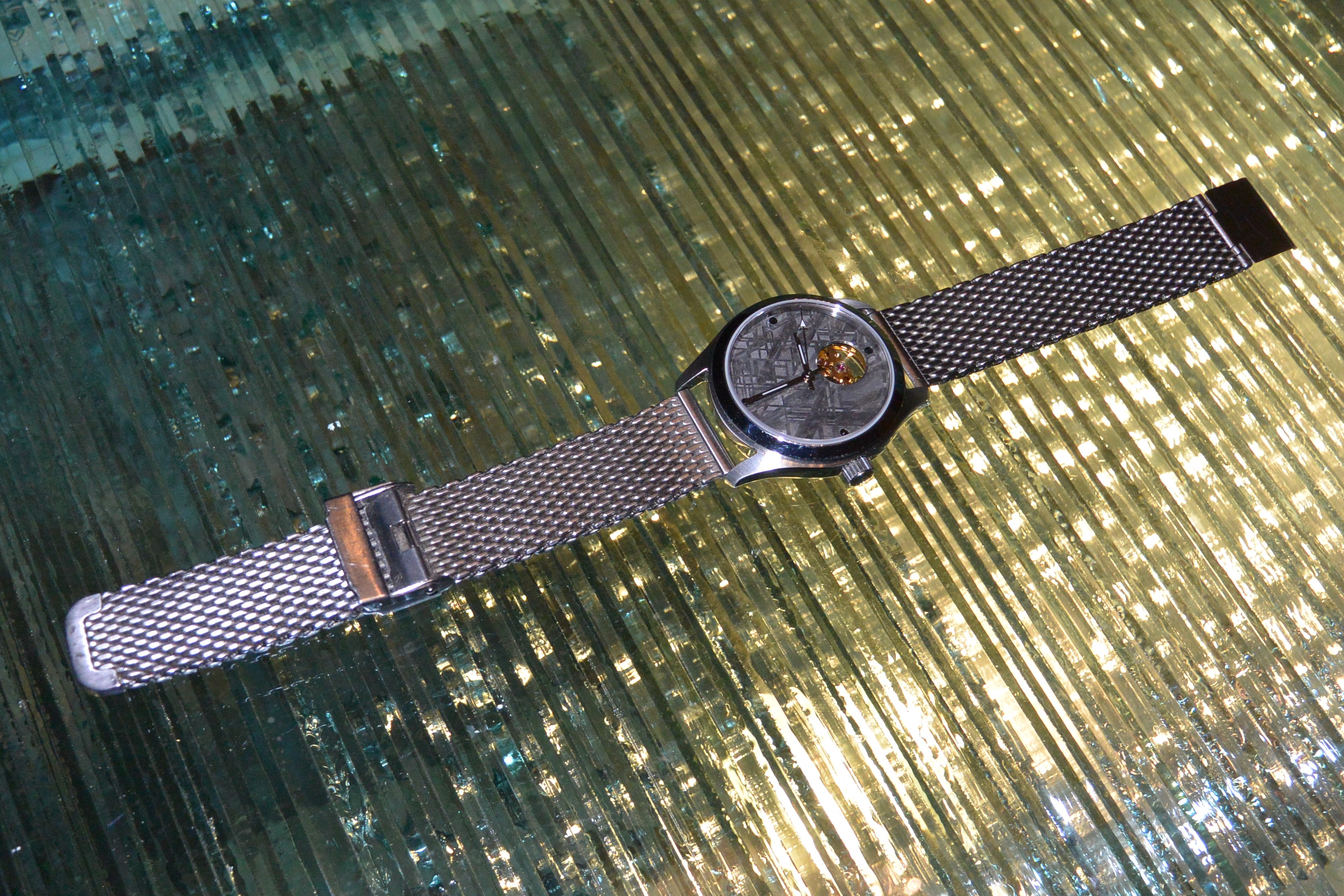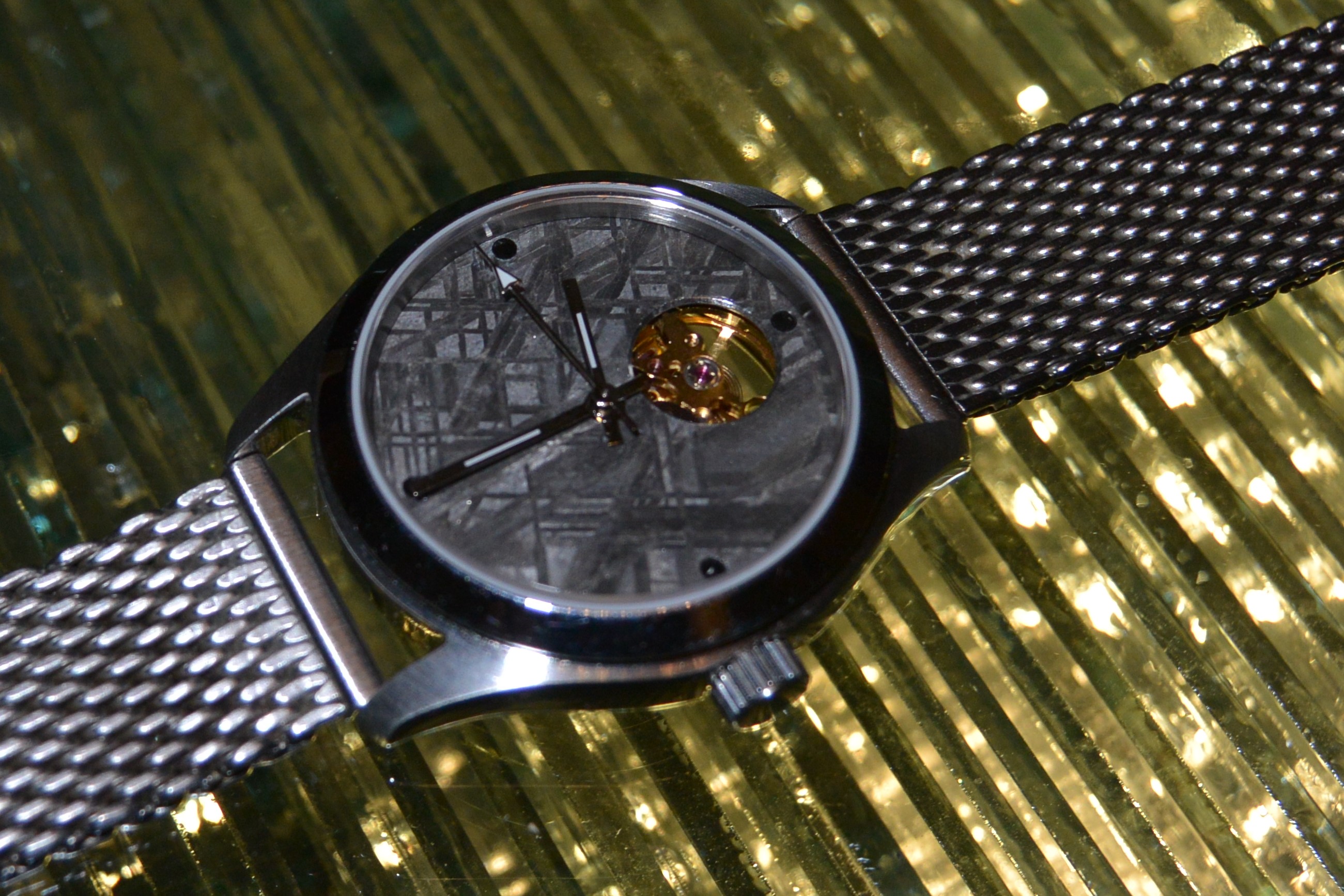 Finally I made Beth a meteorite watch. She needed one that could she could wear in the water so this has a screwdown crown.