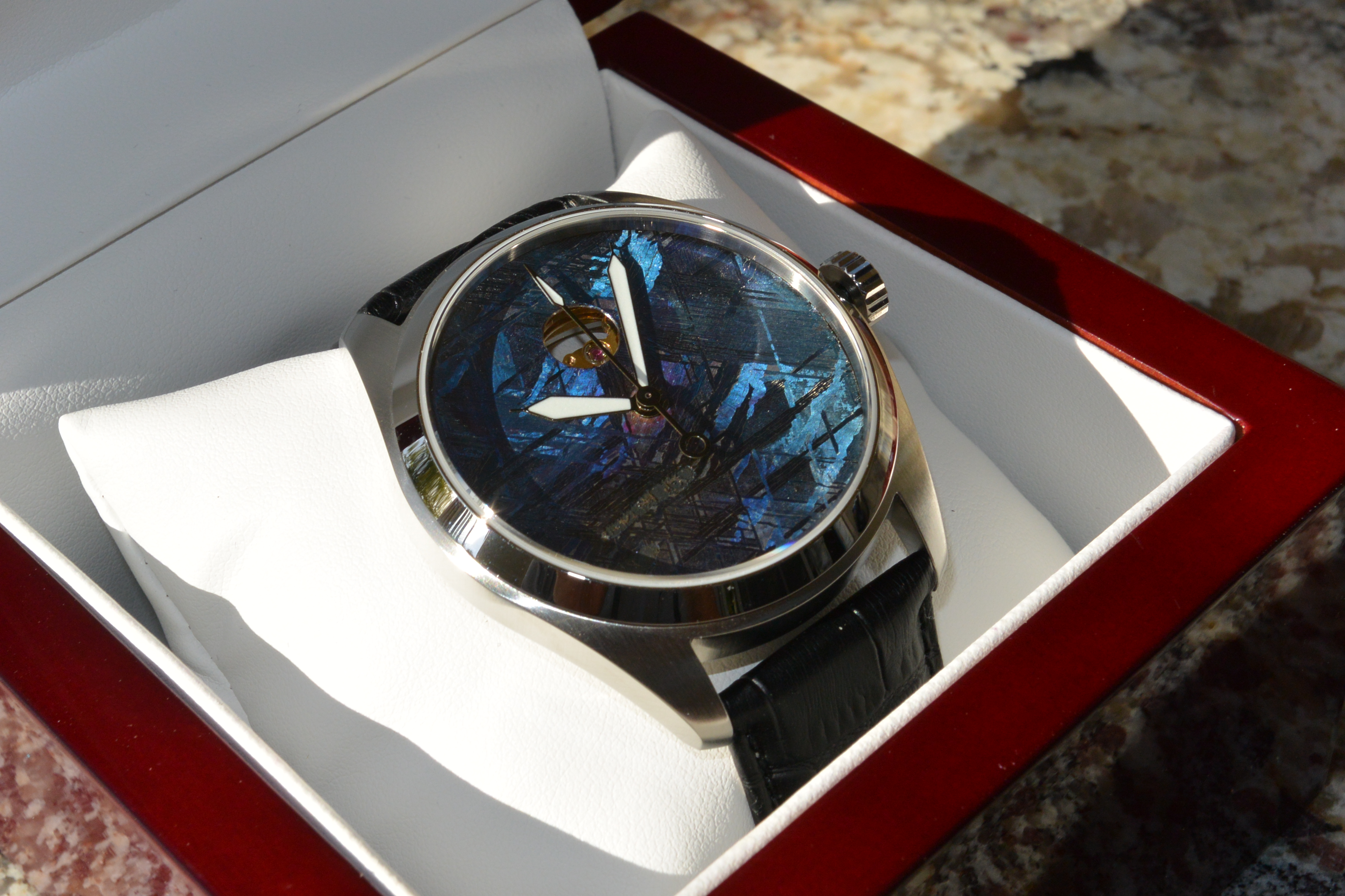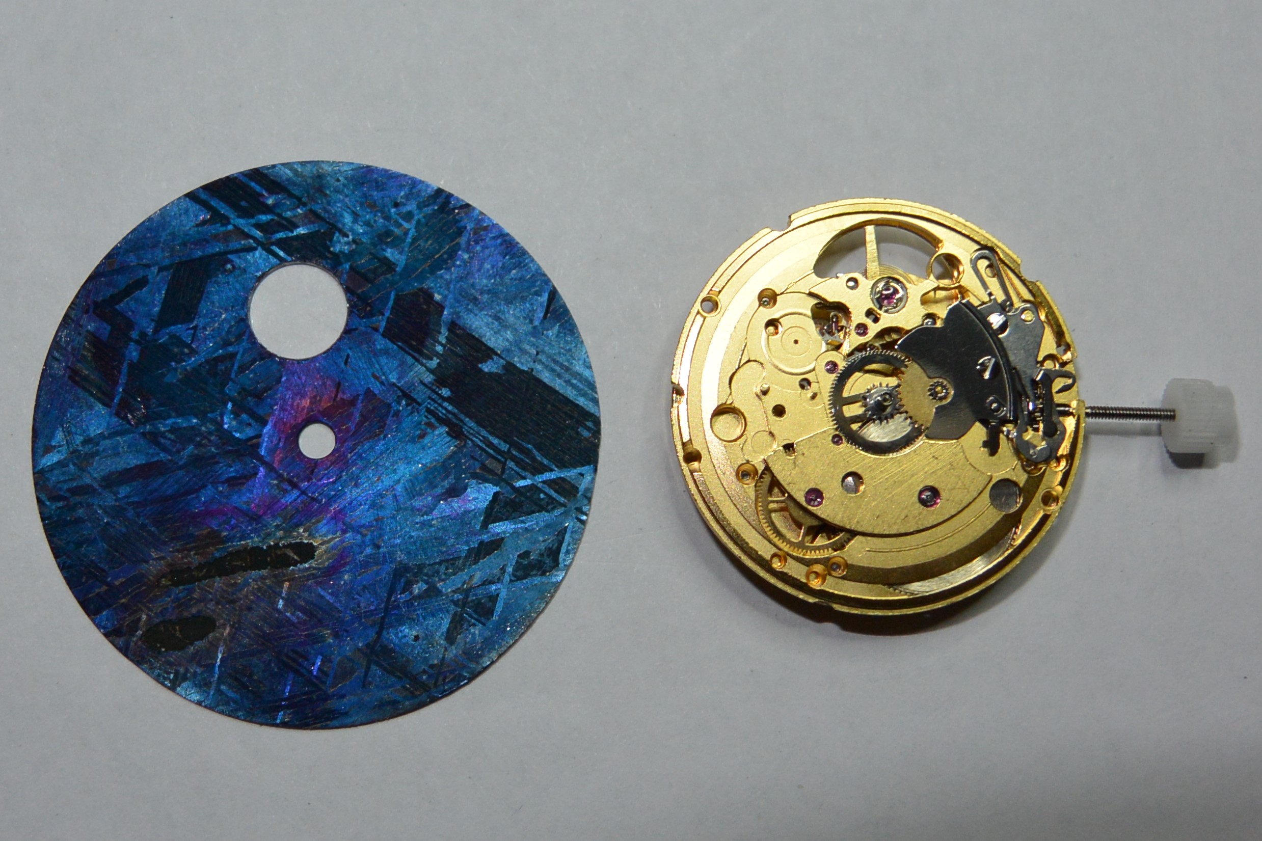 Dial: Gibeon Meteorite blue heat treat with open cutout