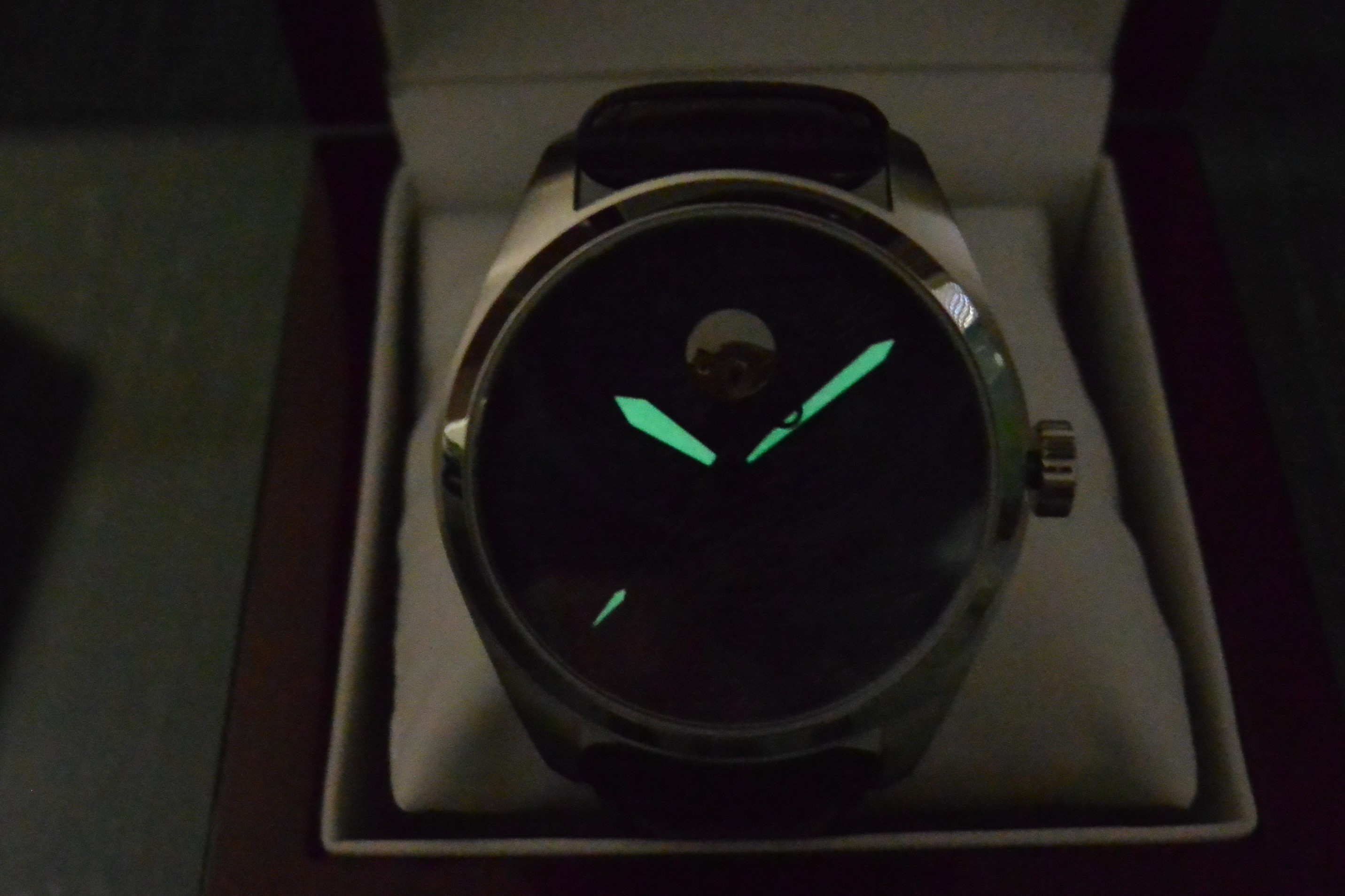 New style 42mm dress case but the Blue on this meteorite came out spectacular. Each piece of meteorite is different as to how it takes the heat treat color so the pieces each have unique personality.